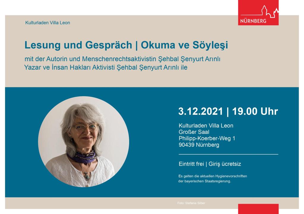 Ne yazık ki Nürnberg, Villa Leon’da yapılacak olan 03.12. tarihli okuma etkinliğimiz yeni Corona önlemleri nedeniyle ertenmek zorunda kaldı. Gelecek aylarda yeni bir tarih kararlaştırılacak.